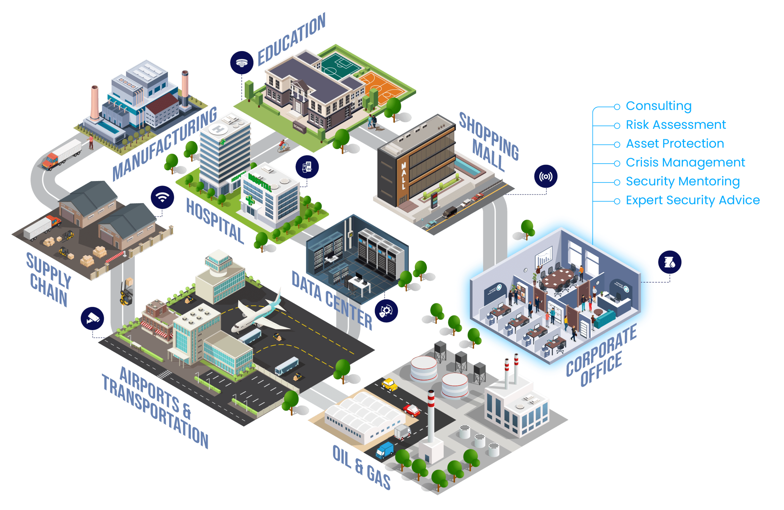 We serve a broad spectrum of industries including corporate, industrial, and expatriate sectors. Our tailored security strategies include executive protection, risk management, and crisis management, and are trusted by businesses that require resilience, regulatory compliance, and operational continuity.
